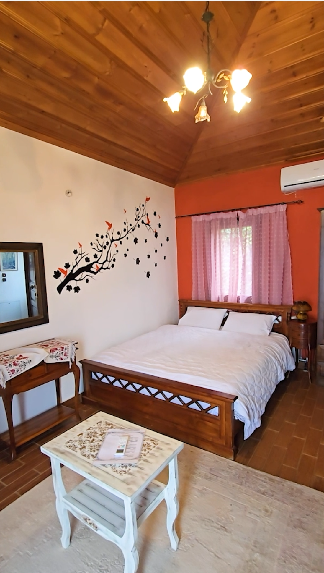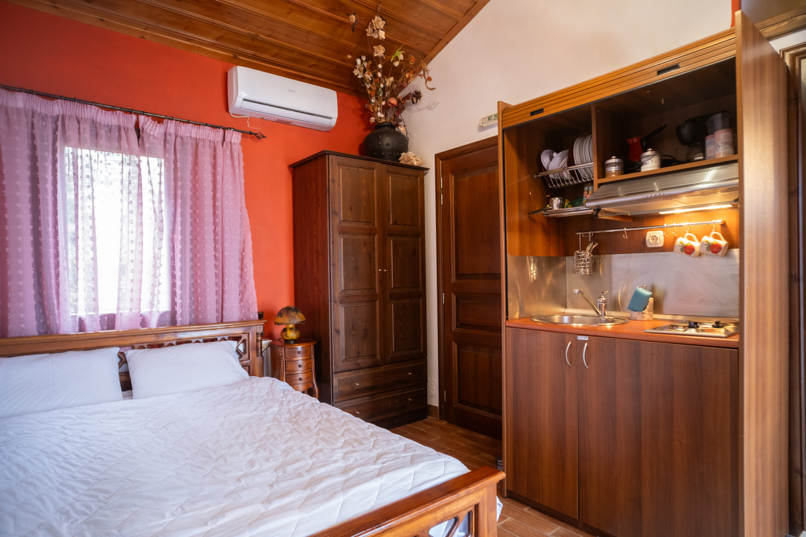Όπως και όλα τα δωμάτια του ξενώνα, είναι εξοπλισμένο με πλήρως λειτουργικό τζάκι, κουζινάκι με τα απαραίτητα για την προετοιμασία ενός γρήγορου γεύματος, κλιματισμό και γρήγορο Wi-Fi, εξασφαλίζοντας άνετη διαμονή όλο τον χρόνο.